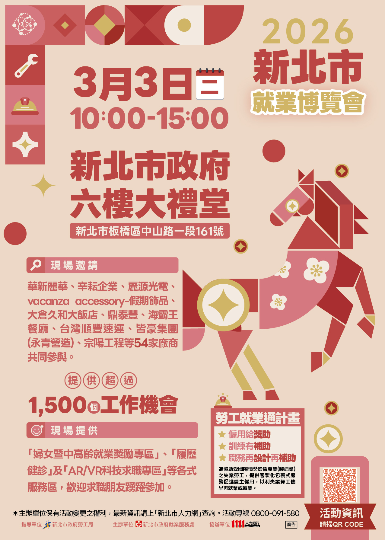 🧑💼[徵才] 新北市政府就業服務處115年3月3日假新北市政府6樓大禮堂舉辦「2026新北市就業博覽會」
