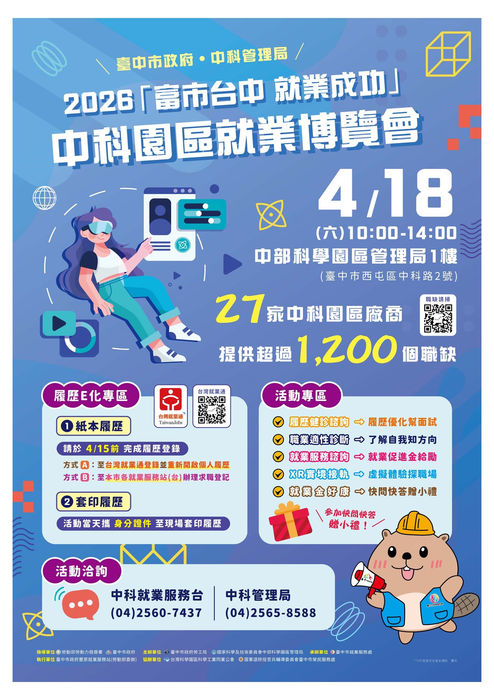 🧑💼[徵才] 115年4月18日(星期六)於中科管理局辦理「富市台中 就業成功」中科園區就業博覽會